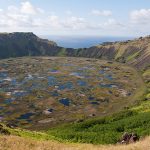 Hike to the most amazing landscape of the island: to the top of Rano Kau, an extinct volcano in the island’s south-western corner. This is the site of Orongo, the ceremonial village where the so-called Birdman cult replaced the moai at the end of the 17th century. Hoa Hakananai’a, the basalt moai that stands in the London’s British Museum, was removed from here in 1868.